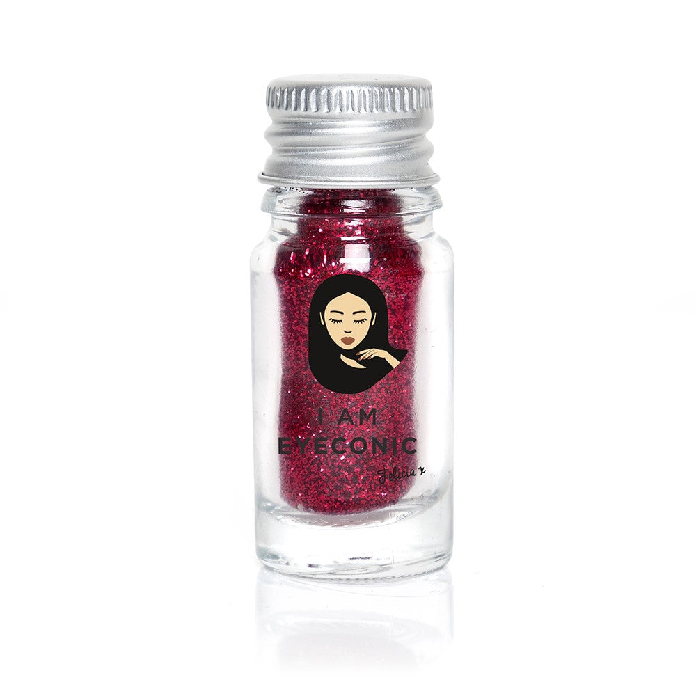 I AM EYECONIC FINE Glitter Bottle in shade Fireball is a fiery crimson red shade – perfect for creating a sizzling hot makeup look. The mix of fine and medium glitter delivers a multi-dimensional effect, whilst the super sparkling pigments provide a bold and long-wearing finish.