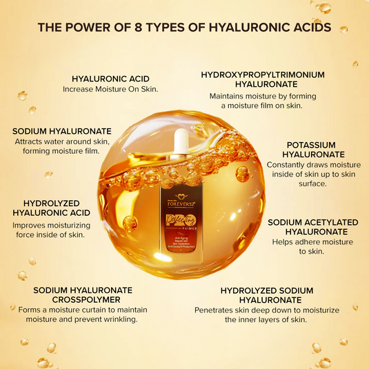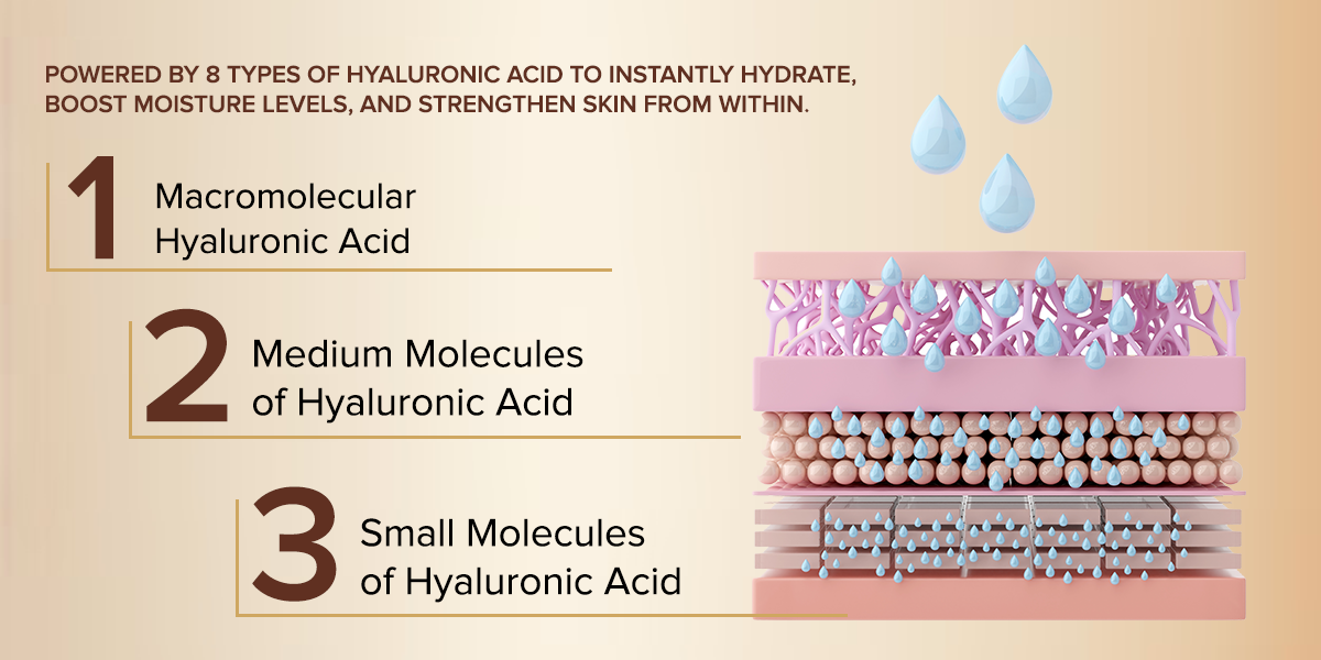 Hydrates and plumps with 8 types of Hyaluronic Acid
