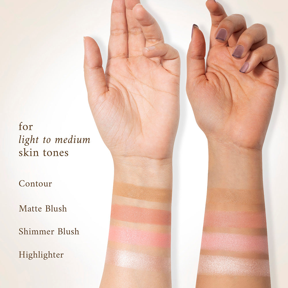 Thoughtfully curated to eliminate the need for multiple products, this all-in-one face palette lets you sculpt, flush, and glow with ease. Each shade is richly pigmented, seamlessly blendable, and designed to enhance your natural features while delivering a polished, runway-ready finish.